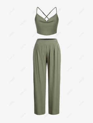 Material: Viscose Material Stretch: No Stretch Waist Type: High Closure Type: Elastic Waist Front Style: Pleated Pattern Type: Solid Decoration: Crisscross Season: Summer With Belt: No