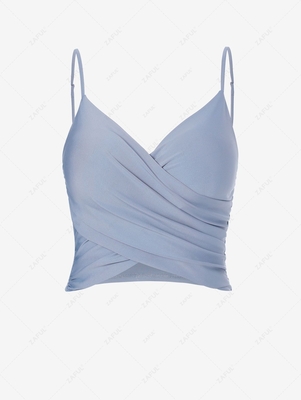 Zaful With a ruched, crossover bodice, this elevated cami top is a style with charm to spare. The cropped fit makes it a great piece for pairing with high-waisted jeans & skirts. Style: Cute Shirt Length: Crop Top Collar: Spaghetti Strap