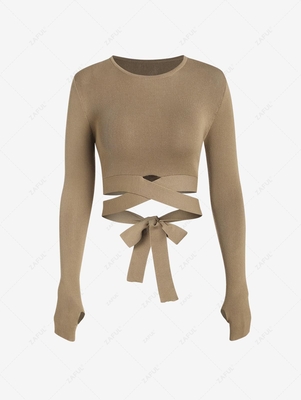 Criss Cross Tie Back Crop Knitwear With Thumb Holes Xl Light Coffee