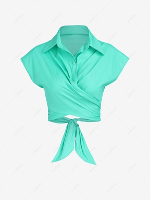 Cotton, Elastane Material Stretch: No Stretch Shirt Length: Crop Top Sleeves Length: Short Type: Button Down Shirt Pattern Type: Solid Decoration: Criss-Cross, Tie Seasons: Summer Weight: 0.1640kg Package: 1 x