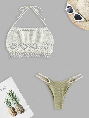 Material: Acrylic, Polyester, Spandex Material Stretch: Slight Stretch Pattern Type: Others Decoration: Beading, Crochet, High Cut, Strappy, Tie Waist: Low Waisted Weight: 0.2450kg Package: 1 x Top 1 x Briefs