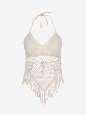 Zaful Style: Sexy Shirt Length: Regular Collar: Halter Collar Material: Polyester Material Stretch: No Stretch Thickness: Standard Pattern Type: Solid Decoration: Fringe Seasons: Fall, Spring, Summer Weight: 0.0850kg Package: 1 x Top