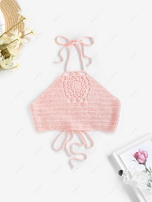Zaful In a crochet fabric, this crop top has a chic halter collarline & self-tie straps at the back. A mini skirt & lace-up sandals are perfect to finish the bohemian look. Style: Sexy Shirt Length: Crop Top Collar: Halter Collar