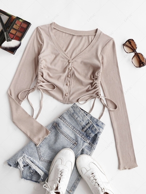 Zaful Trade in your basic top for this elevated long-sleeved tee, which is featuring adjustable drawcords at the sides for a cinched effect & finished with a single-button closure for an extra edge. Pair it with sneakers & high-rise denim for a polished look. Style: Cute Occasions: Daily Shirt
