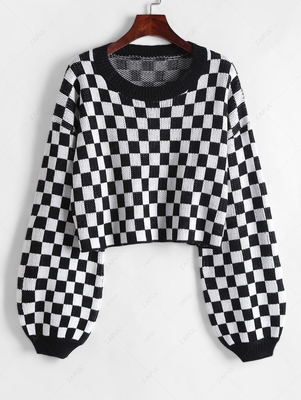 Zaful Cloaked in classic checkerboard & shaped with dramatic balloon sleeves, this piece is calling to be layered over a slip dress or baggy jeans. Type: Pullovers Occasions: Daily Style: Fashion Fit Type: Loose Length: Crop Top Collar: Crew Collar Sleeve Type: Balloon Sleeve Sleeves Length: Full