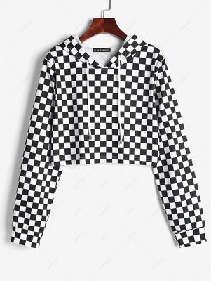 Zaful A cropped fit, it's swathed with monochrome checkerboard print, & team yours with the coordinating jogging bottoms. Style: Fashion Clothing Style: Hoodie Length: Crop Top Sleeves Length: Full