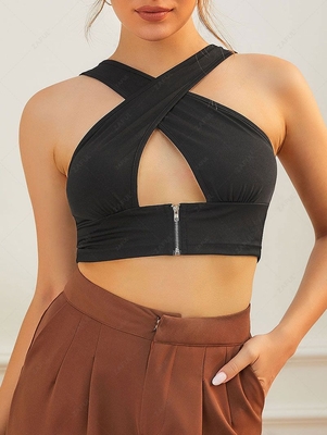 Zaful Cropped to sit on the waist, it's shaped with crossover straps at the collar & is cut out at the midriff. Style: Sexy Shirt Length: Crop Top Collar: V-Collar