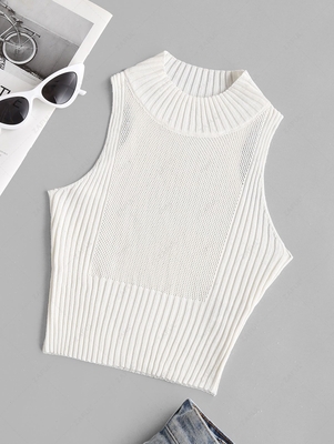 Zaful An elevated pick for your summer-to-fall wardrobe, this cropped tank top features a breezy mix of ribbed design & pointelle knit. Pair it with pleated skirts & simple slides for an effortless Y2K look. Style: Cute Shirt Length: Crop Top Collar: Mock Collar