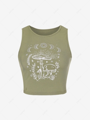 Zaful Style: Casual, Cute Shirt Length: Crop Top Collar: Crew Collar Material: Cotton, Polyester Material Stretch: Slight Stretch Thickness: Standard Pattern Type: Moon, Mushroom Seasons: Summer Weight: 0.1100kg Package: 1 x Tank Top