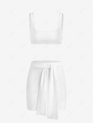 Zaful This flirty yet sporty set is crafted in a two-piece design that can be worn together or as separates. A romantic square collarline adds the retro charm of the crop top, and the formfitting mini skirt ends in a tidy self-tie silhouette. Style: Cute Occasion: Daily, Night Out Fit Type: Slim Sil
