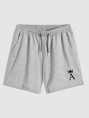 Crown And Alphabet A Pattern Drawstring Shorts M Light Gray