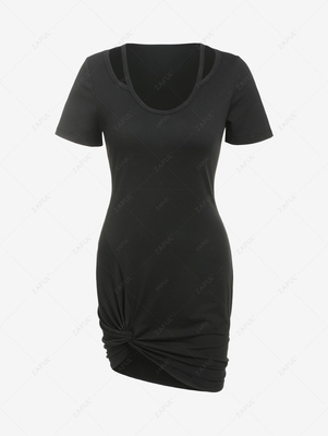 Zaful Style: Brief Occasion: Date Night, Going Out Silhouette: Bodycon Collar-line: Round Collar Sleeves Length: Short Sleeves Dresses Length: Mini Material: Polyester, Spandex Material Stretch: High Stretch Pattern Type: Solid Decoration: Cut Out, Twist Season: Fall, Spring, Summer With Belt: No Weight