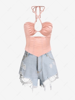 Zaful Occasion: Casual Style: Cute, Fashion, Sexy Fit Type: Regular Collar-line: Halter Sleeves Length: Sleeveless Bottom Length: Mini Waist Type: High Closure Type: Zipper Fly