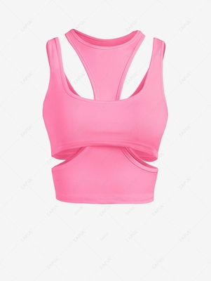 Zaful Available in an array of colors, this on-trend piece features an ultra-short tank top layering on a racerback top for a folded cutout effect. Style: Sexy Shirt Length: Crop Top Collar: U Collar Material: Polyester, Spandex Pattern Type: Solid Decoration: Cut Out, Racerback Thickness: Standard M