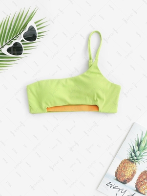 Zaful Style: Sexy Gender: For Women Swimwear Type: Bikini Top Material: Polyester, Spandex Material Stretch: High Stretch Bra Style: Padded Chest Pad: Removable Pads Support Type: Wire Free Collar-line: One Shoulder Pattern Type: Colorblock Decoration: Cut Out Weight: 0.1300kg Package: 1 x Top