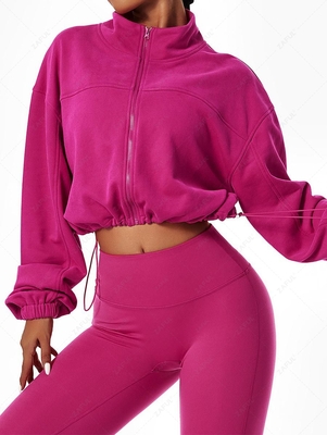 Cotton, Polyester Material Stretch: High Stretch Collar-line: Turn-down Collar Length: Short Sleeve Type: Drop Shoulder Sleeves Length: Long Sleeves Pattern Type: Solid Decoration: Zip Front Season: Fall Weight: 0.3650kg P