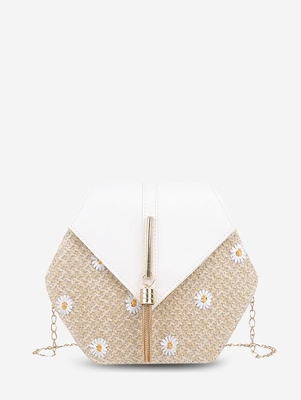 Zaful Gender: For Women Type: Crossbody bag Shape: Other Style: Casual, Cute Occasion: Daily Closure Type: Magnetic Closure Strap Type: Chain Pattern Type: Daisy