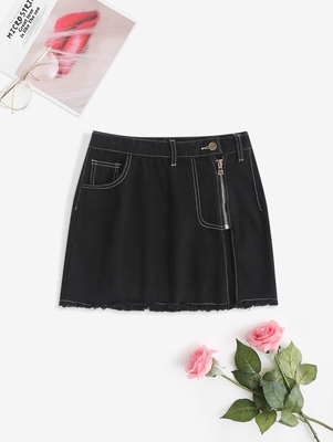 Material: Cotton, Polyester Material Stretch: No Stretch Pattern Type: Others Decoration: Slit, Topstitching, Zippers Closure Style: Zipper Fly Season: Spring, Summer With Belt: No Weight: 0.2400kg Package: 1 x Skirt