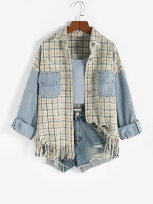 Material: Cotton, Polyester Material Stretch: No Stretch Type: Wide-waisted Length: Long Sleeves Length: Long Sleeves Sleeve Type: Drop Shoulder Collar: Shirt Collar Closure Type: Single Breasted Pattern Type: Plaid Decoration: Pockets With Belt: No Seasons: Fal
