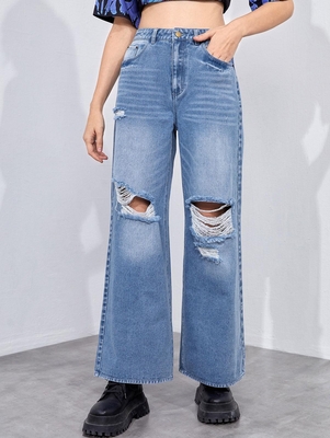 Material: Cotton, Polyester Pant Style: Wide Leg Pants Wash: Stone Wash Length: Normal Fit Type: Loose Waist Type: Mid Closure Type: Zipper Fly Pattern Type: Solid Decoration: Pockets, Ripped With Belt: No Material Stretch: No Stretch Season: Spring, Summer Weight: 0.6570kg Packag
