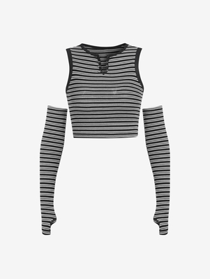 Detached Sleeve Stripes Safety Pins Tee M Black