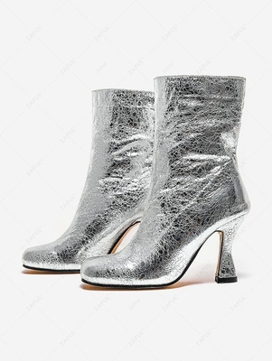 Disco Metallic Glitter Sparkle Kitten Heeled Slip On Boots