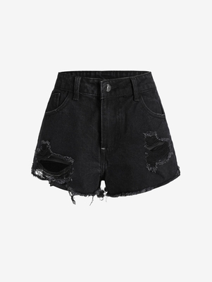 Zaful Occasions: Daily Style: Fashion Material: Cotton, Polyester Length: Mini Fit Type: Regular Waist Type: High Closure Type: Zipper Fly Front Style: Flat Pattern Type: Solid Color Decoration: Frayed, Pockets, Ripped Material Stretch: No Stretch With Belt: No Seasons: Summer Weight: 0.3710kg Package