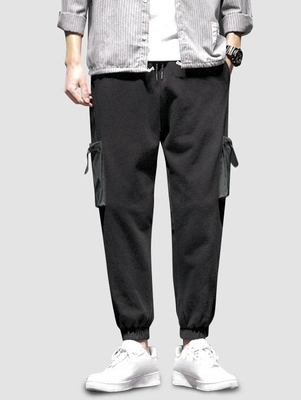 Zaful Add some unique looks to your off-duty wardrobe with these joggers. Featuring pouch pockets with drawstrings, we are obsessed. Style this with a basic tee & sneakers to complete the look. Pant Style: Jogger Pants Style: Casual Occasions: Daily Pant Length: Long Pants Fit Type: Regular Front