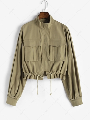 Zaful Clothes Type: Cargo Jacket Style: Fashion, Streetwear Material: Polyester, Spandex Material Stretch: No Stretch Type: Wide-waisted Length: Short Sleeves Length: Long Sleeves Collar: High Collar Closure Type: Zipper Pattern Type: Solid Decoration: Pockets With Belt: No Seasons: Fall, Winter Weigh