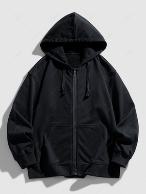 Drawstring Zip Up Pocket Hoodie 2xl Black