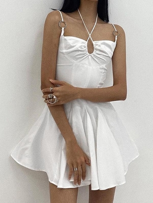 Zaful Style: Fashion Occasion: Date Night Dress Type: Skater Dress Silhouette: A-Line Collar-line: Spaghetti Strap Sleeves Length: Sleeveless Dresses Length: Mini