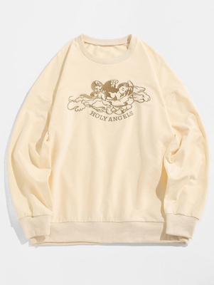 Zaful The pullover is cut to a classic outline, that sporty classic beloved of lounge fans & actual athletes alike. To finish, it's embroidered with angels across the chest. Style: Casual Clothing Style: Sweatshirt Collar-line: Crew Collar Length: Regular Sleeves Length: Full