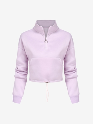 Drop Shoulder Half Zip Drawstring Hem Sweatshirt L Light Purple