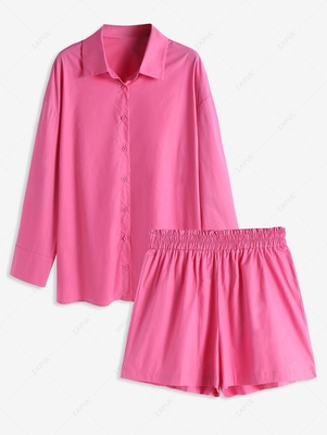 Zaful Occasion: Daily Style: Casual Fit Type: Loose Collar-line: Shirt Collar Sleeves Length: Long Sleeves Material: Cotton Material Stretch: No Stretch Waist Type: High Closure Type: Elastic Waist Front Style: Flat Pattern Type: Solid Color Season: Fall With Belt: No Weight: 0.4200kg Package: 1 x