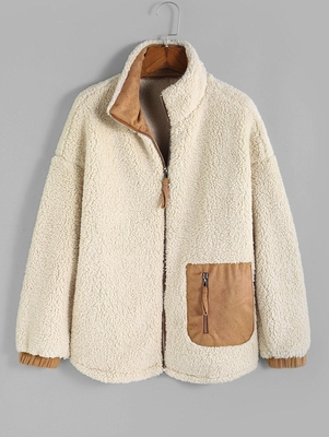 Zaful Clothes Type: Coat Style: Casual Occasions: Daily Type: Wide-waisted Length: Regular Collar: Turndown Collar Sleeves Length: Long Sleeves Sleeve Type: Drop Shoulder Closure Type: Zipper Material: Polyester Material Stretch: High Stretch Pattern Type: Colorblock Decoration: Pockets With Belt: