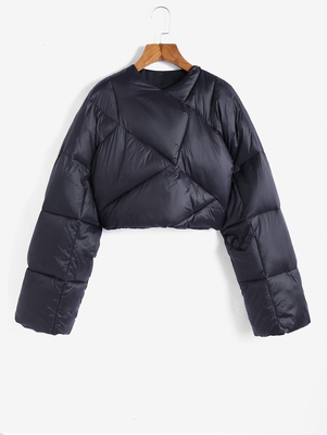 Drop Shoulder Quilted Crop Puffer Jacket S Black