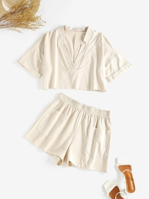 Zaful Occasion: Daily Style: Casual Fit Type: Loose Collar-line: V Collar Sleeve Type: Drop Shoulder Sleeves Length: Short Sleeves