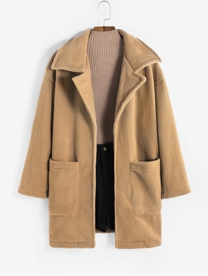 Zaful Clothes Type: Long Coat Style: Casual Occasions: Daily Type: Wide-waisted Length: Longline Collar: Lapel Sleeves Length: Long Sleeves Sleeve Type: Drop Shoulder Material: Polyester Material Stretch: Slight Stretch Pattern Type: Solid Color Decoration: Pockets With Belt: No Seasons: Fall Weigh