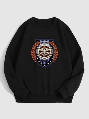 Eagle Badge Pattern Fleece-lined Sweatshirt S Black