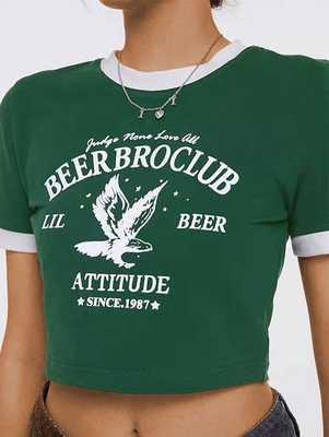 Zaful Style: Cute Occasions: Daily Shirt Length: Crop Top Collar: Round Collar Sleeves Length: Short Sleeves Fit Type: Slim Material: Cotton, Spandex Material Stretch: Slight Stretch Pattern Type: Eagle, Letter Seasons: Summer Weight: 0.1300kg Package: 1 x T Shirt