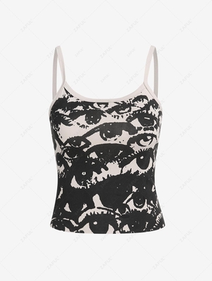 Eye Print Cami Tank Top L Light Coffee