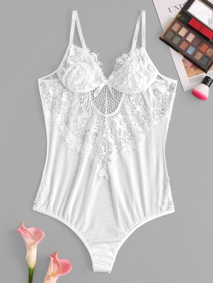Zaful This lingerie bodysuit crafting from a sheer mesh fabric has feminine lace inserts with eyelash trims, a flattering cupped design, & a lovely bowknot decoration. Complete the look with a satin robe & fluffy slippers. Style: Sexy