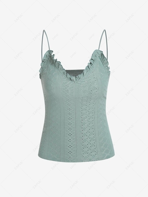 Zaful A slim, stretchy bodice with summery eyelet & frills distinguishes this cute cami top, which is an easy way to pretty up off-duty denim or crisp flared trousers. Style: Cute, Sweet Shirt Length: Regular Collar: Spaghetti Strap
