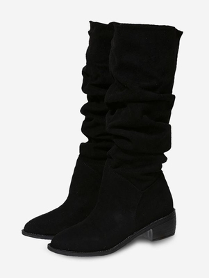 Faux Suede Fleece Lined Calf Slouchy Boots