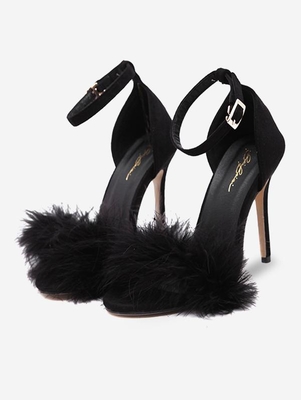 Zaful Gender: For Women Style: Elegant Occasion: Party, Wedding Sandals Style: Sandals Heel Type: Stiletto Heel Strap Type: Ankle Strap Closure Type: Buckle Strap Pattern Type: Solid Color Decoration: Feathers Heel Height: 11CM Upper Material: Suede Outsole Material: Rubber Season: Spring, Summer Wei