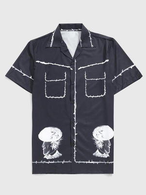 Zaful A perfect addition to the summer collections, the shirt inspired by figure & thorns print is perfect for the season play & spices up the vacation vibes. The piece featuring a notched collar & frontal button fastenings will highlight your silhouette & dress you with refinement. Pull it