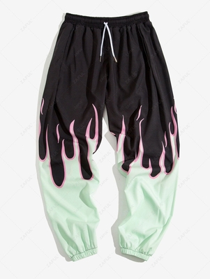 Zaful The bright fire flame print elevates the look of the pants. It features practical details such as an elasticated waist, beam feet cuffs, & side pockets. & Pair it with a matching sweatshirt or tee for a more elegant & chic look. Pant Style: Jogger Pants Style: Casual, Fashion Occasions: