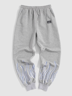 Zaful The pants combine a fashionable style with the fire flame print for a distinguished aesthetic & offer a new look to the simple masculine wardrobe with their casual style. The piece features practical details such as an elasticated waist with a drawstring & elastic cuffs for added comfort.