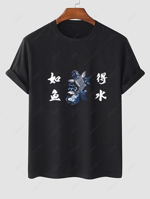 Zaful Style: Casual, Chinese Style, Funny Material: Cotton Material Stretch: Slight Stretch Fit Type: Regular Fit Shirt Length: Regular Sleeves Length: Short Collar: Crew Collar Pattern Type: Chinese Characters, Fish, Graphic Season: Summer Weight: 0.2050kg Package: 1 x T Shirt