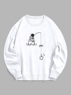 Zaful Gender: For Men Clothes Type: Sweatshirts Style: Casual Occasions: Daily Fit Type: Loose Collar: Crew Collar Sleeves Length: Long Sleeves Pattern Type: Astronaut, Print